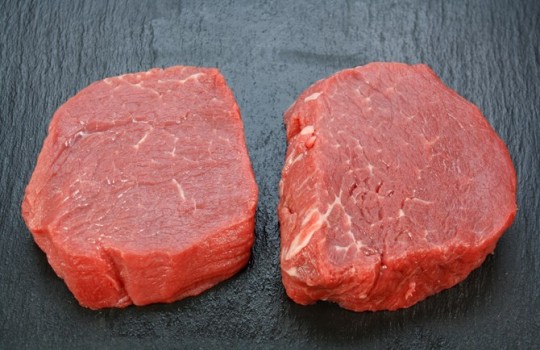 Fersk afpudset oksemørbrad i skiver.