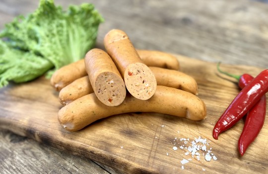 Så prøv vores chilipølse, som udover chili og indeholder paprika, persille og hvidløg.