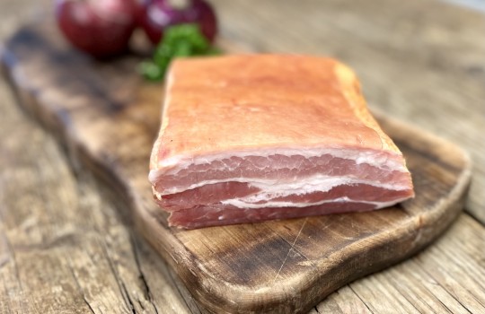 Vores bacon er en hyldest til det håndværksmæssige slagterarbejde. Hver eneste stykke er røget på vores eget røgeri, hvor vi sikrer en fyldig og karakteristisk smag, du kan stole på. Perfekt til både klassiske hjemmelavede retter og gastronomiske eksperimenter.