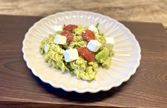 En klassisk og smagfuld pastasalat, der samler det bedste fra det middelhavsinspirerede køkken. Med en fyldig grøn pesto, saftige soltørrede tomater og cremet, smuldret feta bringer denne pastasalat både friskhed og et strejf af hverdagsluksus til bordet. Den er nænsomt fremstillet med fokus på kvalitet og smag, perfekt til dig, der ønsker et hurtigt og lækkert måltid uden at gå på kompromis med de gode råvarer.