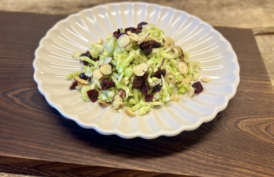 Broccoli julienne (51%), honning, soltørrede tranebær (trænebær, sukker, solsikkeolie), HASSELNØDDEFLAGER, rapsolie, citronsaft, (citronsaft fra koncentrat, konservering (E223, SULFITTER)), salt, peber.