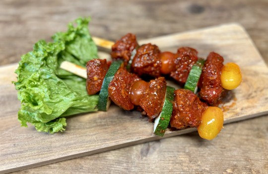 De nøje sammensatte ingredienser sikrer ikke kun en fantastisk smagsoplevelse, men også en balance mellem det krydrede og det friske. Vores marinerede mørbradspyd er skabt til at gøre enhver grillstund til noget helt særligt. Fra vores køkken til dit sommerbord.